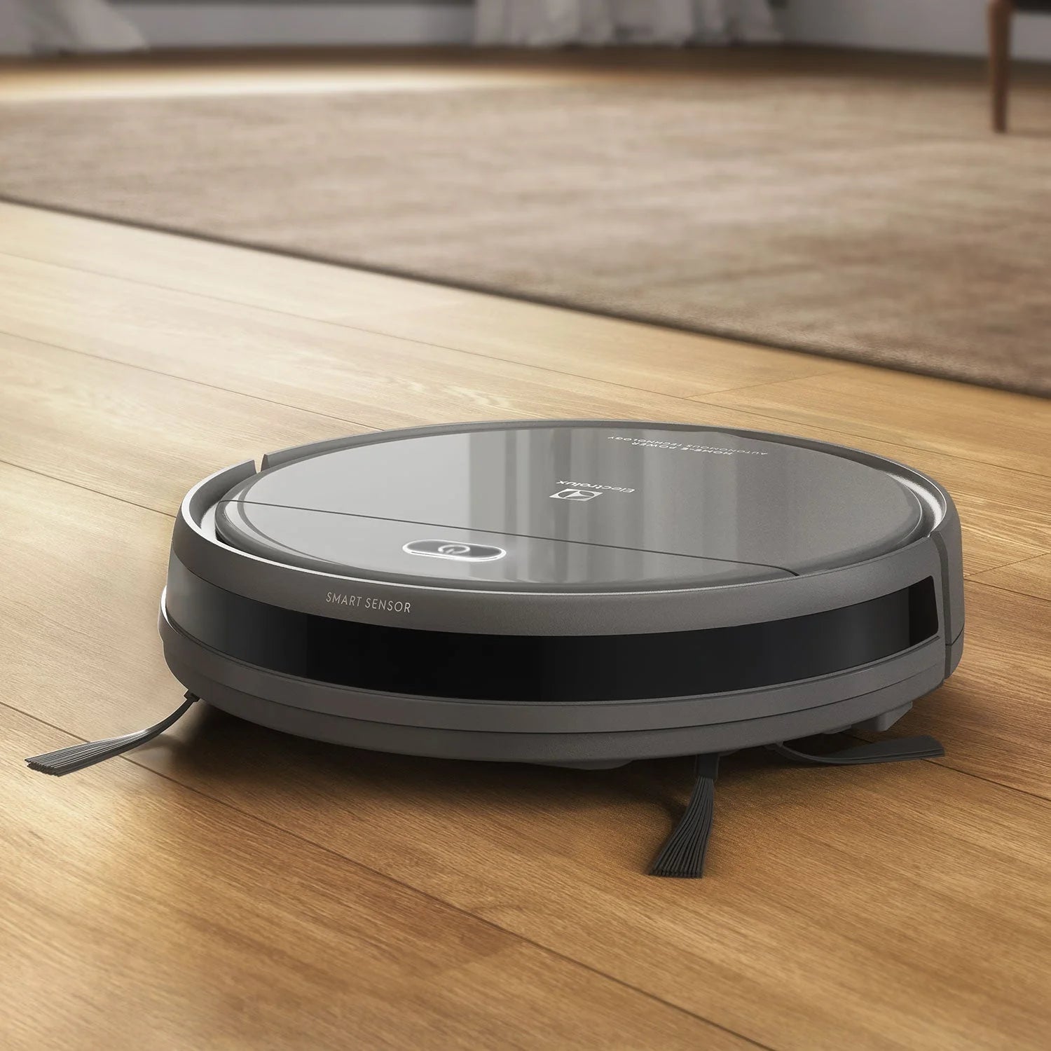 Nuestra aspiradora robot inteligente. Equipada con sensores anticolisión y anticaída, se desliza con precisión por cada rincón, eliminando polvo, pelos de mascotas y suciedad sin que tengas que mover un dedo.