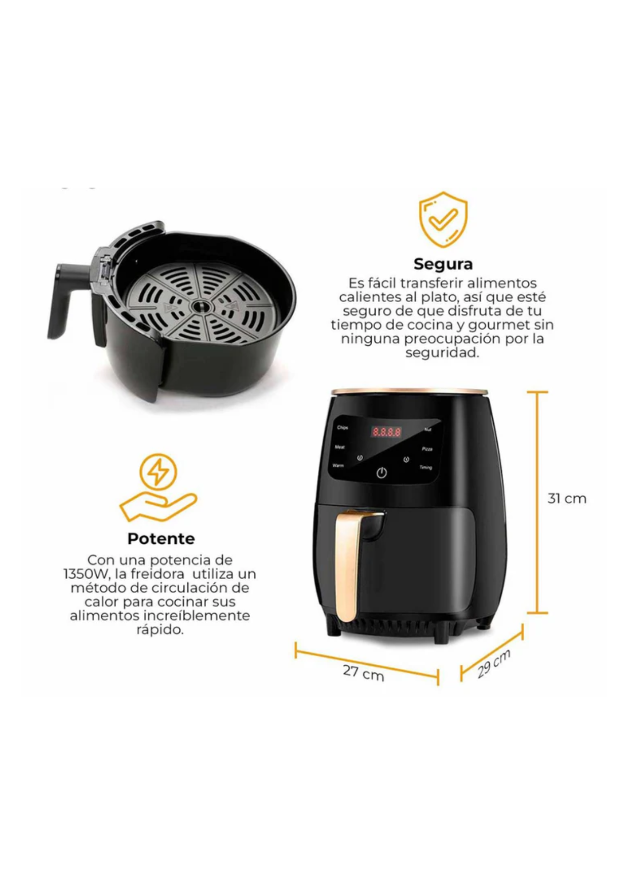 Moderna, práctica y espaciosa, esta freidora de aire será tu aliada perfecta para preparar comidas deliciosas de forma más saludable. ¡Disfruta tus recetas favoritas sin culpas ni complicaciones!
